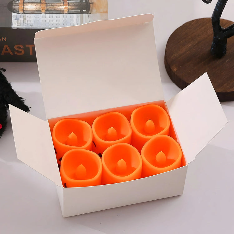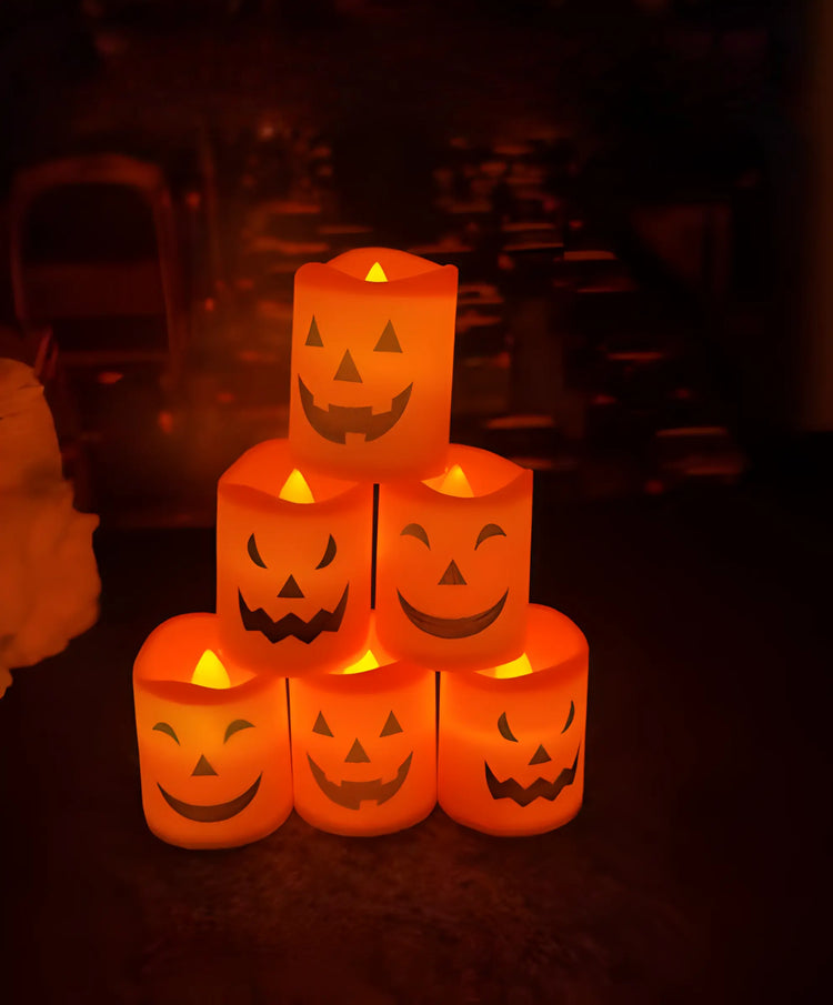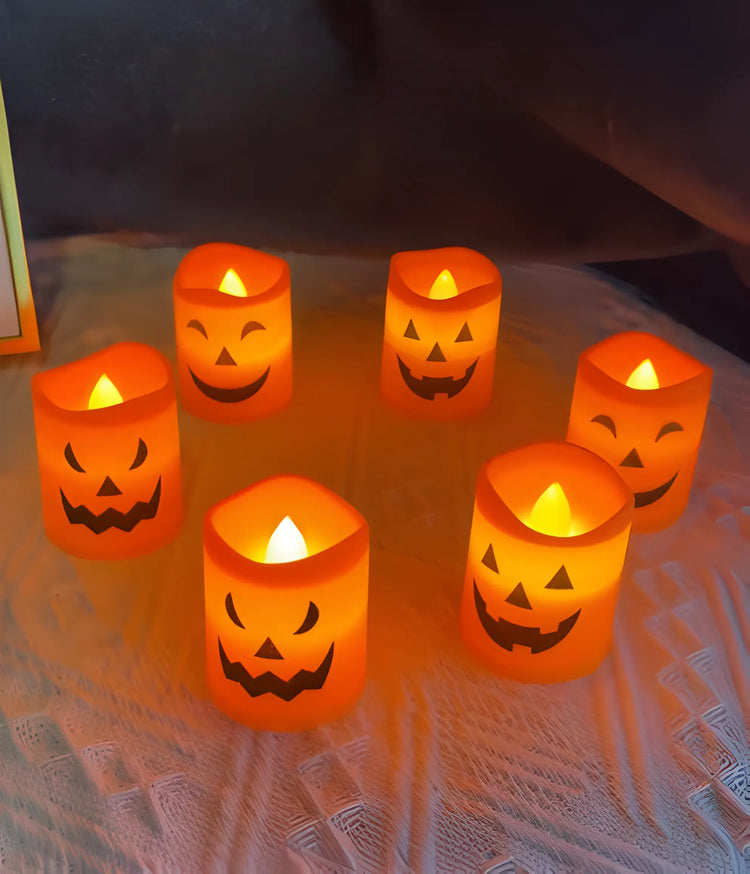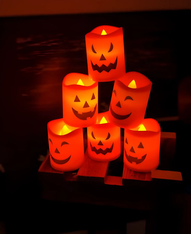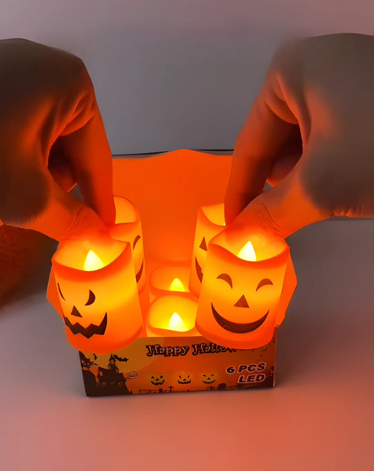 Create a spooky yet cozy atmosphere with this set of 6 flameless LED pumpkin candles. Featuring a realistic flickering flame effect, each candle (4.3×3.5×3.5 cm) is battery-powered and perfect for Halloween parties, events, or festive home décor.